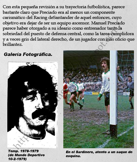 #42• Escrito originalmente por @Maese_Eriko Lo que se tendria que hacer es contactar con el autor de la escultura de Manolo Preciado que esta en Gijon y a partir del molde original hacer una copia y colocarla en las inmediaciones del Sardinero. Yo no utilizaría el mismo molde, por un motivo. Manolo aquí se le debiera poner de futbolista y no como entrenador. Con esa pose 80 y sus greñas y bigotes. Además que aparezca la equipación del Racing obviamente. Aún se me hace raro pensar que está muerto.... | |