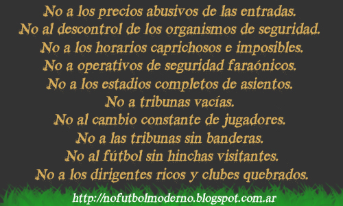 #16• Escrito originalmente por @Pitmans Al juzgado no se puede ir porque la misma gente que se pretende denunciar controla a los miembros del mismo. Del primero al último hacen lo que se les ordena, no lo que dicen las leyes. Ademas, las fuerzas de seguridad que tambien operan por alli seguramente te detendrian o algo peor porque están controladas por el poder politico regional, que se enteraria de todo a los 5 minutos, por la red de correveidiles y de mangantes que hay en ésta ciudad. Mientras el poder legislativo, judicial y ejecutivo, además del mediático y las fuerzas de orden publico estén bajo el control de ésta directiva, lo de andar denunciando nada es un ejercicio de total futilidad. Lo que hacen la mayoria, es mirar para otro lado, unirse al club en mayor o menor medida y poner el cazo para recibir lo suyo. Hablamos de un presupuesto de millones de euros que desaparecen anyo tras anyo, y claro, la gente tiene que pagarse sus vicios y total, que puede pasar? que desparecza el club? a todo el que no es verdadero aficionado del club, le importa un huevo si eso ocurre o deja de ocurrir. El quiere sacar tajada y punto y ahora mismo el Racing es un rio de dinero que sale del presupuesto y va directamente a todos esos bolsillos, que no son ni 1 ni 10 ni 100, sino muchisimos más que esos.