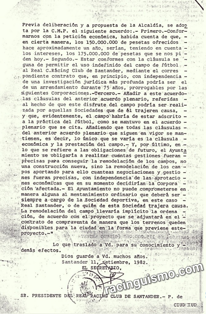 Aparte de que es una carta de 1982, que no sé muy bien qué coño tiene que ver con el convenio de uso de El Sardinero, que no estaba todavía ni a plano... | |