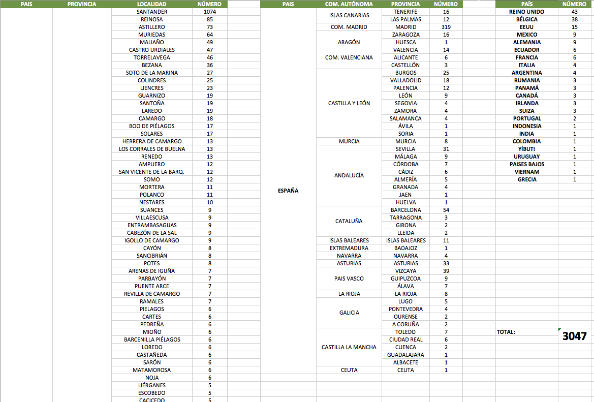 #43•• 48% escrutado (tengo que hacer limpieza de pueblos y municipios cántabros que igual hay alguno repetido o con nombres diferentes... pero gracias por las anotaciones) Ojo al accionista de Vietnam. Muy top! EDITO: Mierda de faltas ortográficas... he puesto "Viernam"