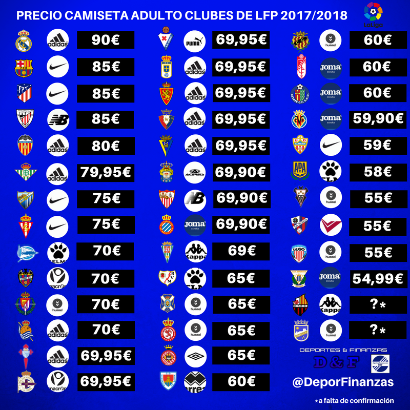 #292• precio de las camisetas de equipos de LFP. Las hummel entre 70 (valladolid) y 55 (lugo y albacete).