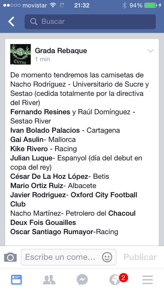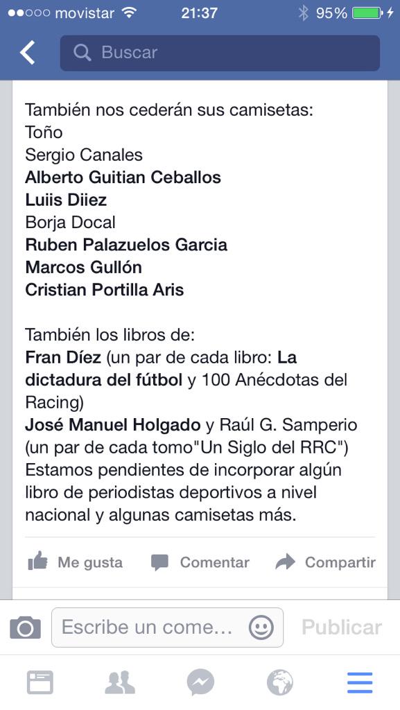 son aficionados del Racing. Igual alguien les conoce o conoce a alguien de su círculo y les puede pedir una camiseta para sortearla. Yo he probado a mandarle un tweet a saneme, pero no creo que a mi me responda. Quizás si lo hace el club. Un saludo. Se lo he pedido a Suky Rebaque que es el que parce que lo está moviendo o no se exactamente y les he mencionado a los dos... gracias por la idea | |