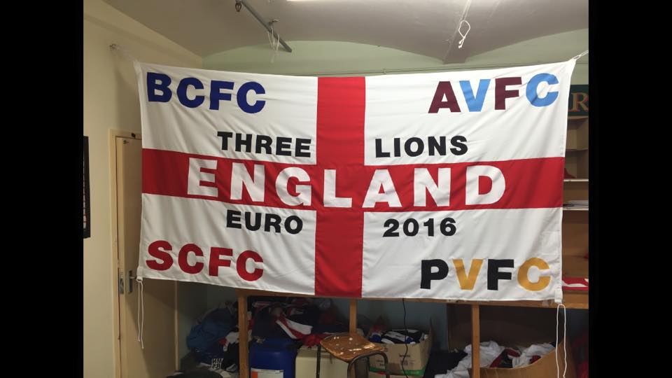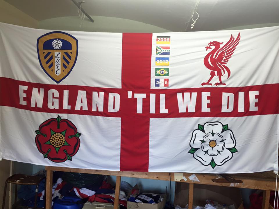 #35•• Voy a hablar de una frikada mia de esta Eurocopa. Son los ingleses todos con sus banderas personificadas. La mayotia llevan puesto el lugar de donde son o del equipo que son, y luego el escudo su equipo o algun elemento de su equipo y el de la seleccion inglesa. Alguna foto que esta al reves es porque se las han robado. Estas son de las imagenews mas faciles que he encontrado poor ahi, pero habra alguna de todas ellas dentro del estadio que imponen, por lo menos a mi, pero que no he podido encontrar tan facilmente.