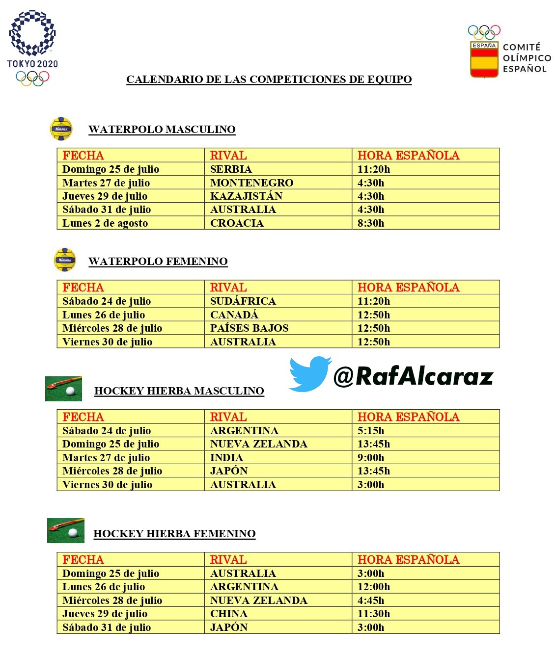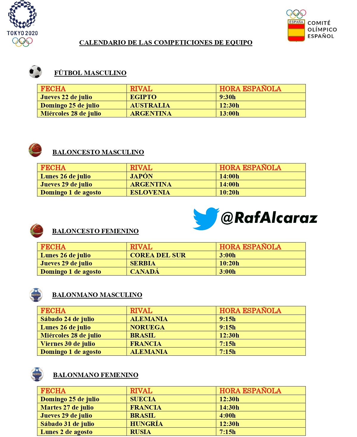 #5• Horarios de las primeras fases para los deportes de equipos: | |