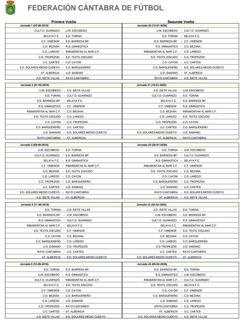 Ya hay calendario en Tercera División. Consultar calendario: https://www.federacioncantabradefut[....]16148&codgrupo=6216149&CodJornada=1 | |