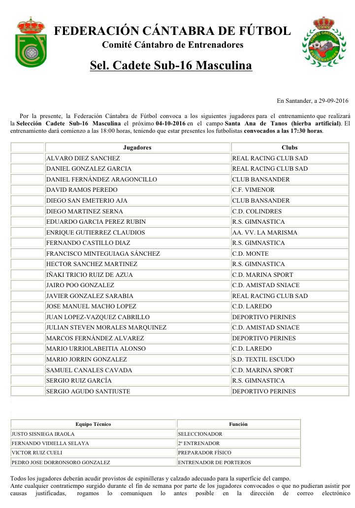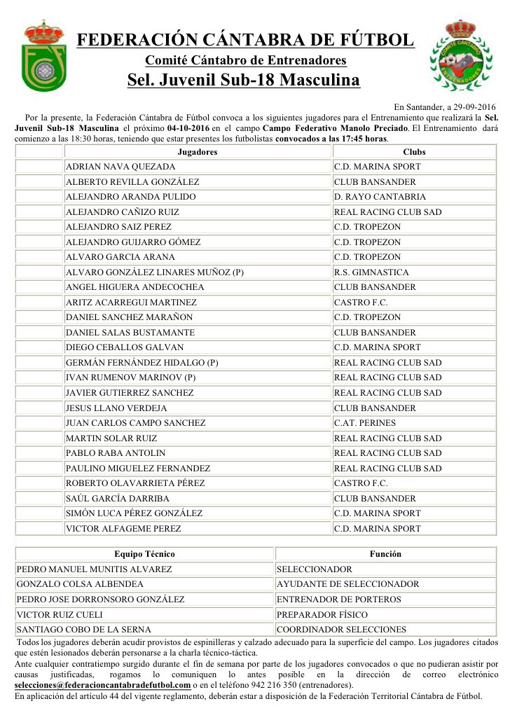 #2.142•• Empiezan las convocatorias para la seleccion Cantabra sub 18. Desconocia que Munitis y Colsa eran los seleccionadores. Como es normal varios del Racing. De la sub 16 no he visto que hayhan hecho convocatoria, quizas empiecen mas adelante.