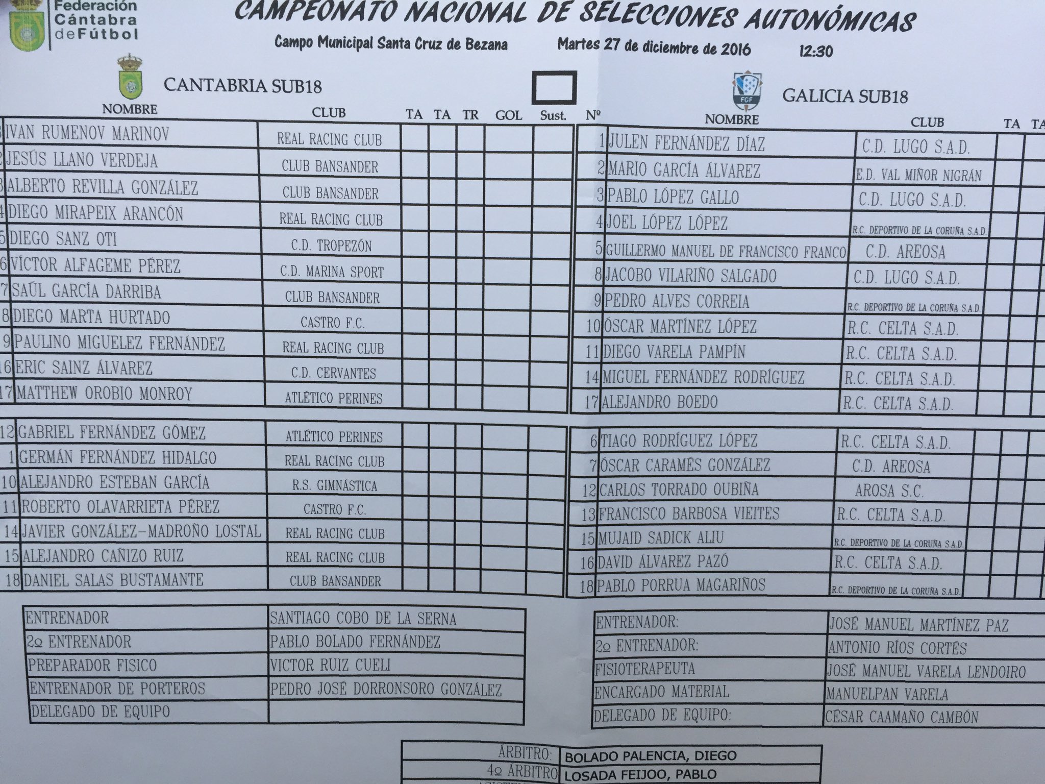 de momento gana 2-1 cantabria sub16 a galicia con dos goles de diego campo del bansander, uno de ellos gol olimpico. Viendo el twitter de la FCF, parece que hasta en el estadio de bezana, que es donde se juega este sector, hay un videomarcador... en fin.