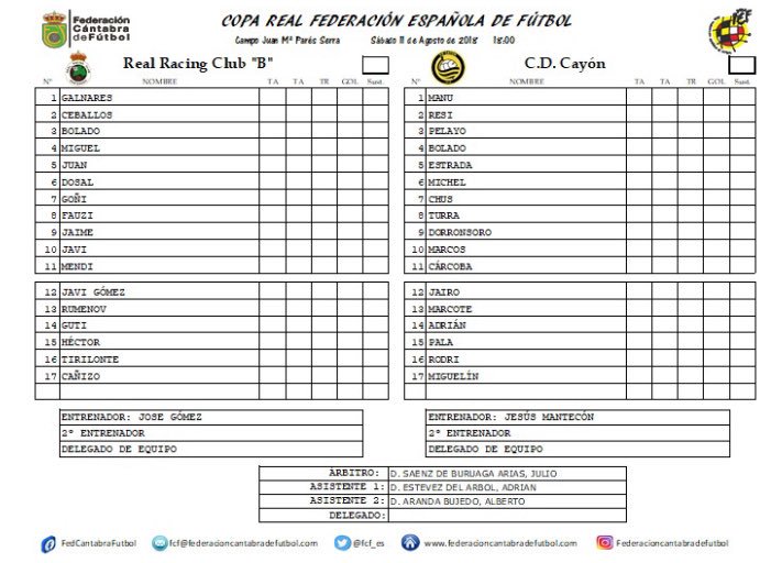 Jugando el racing b copa federacion, de momento al descanso racing b 1-0 cayon, gol de juan de cabeza.