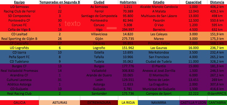 #1• Temporada nueva hilo nuevo, aunque quizá algunos supersticiosos preferían seguir con el hilo de la temporada del ascenso... Hace unas semanas elaboré esta tablilla con los equipos del grupo, interesante sobre todo para el tema desplazamientos. Este año hay unos cuantos muy majos para hacer, creo que nuevamente nos haremos notar por los campos de bronce.