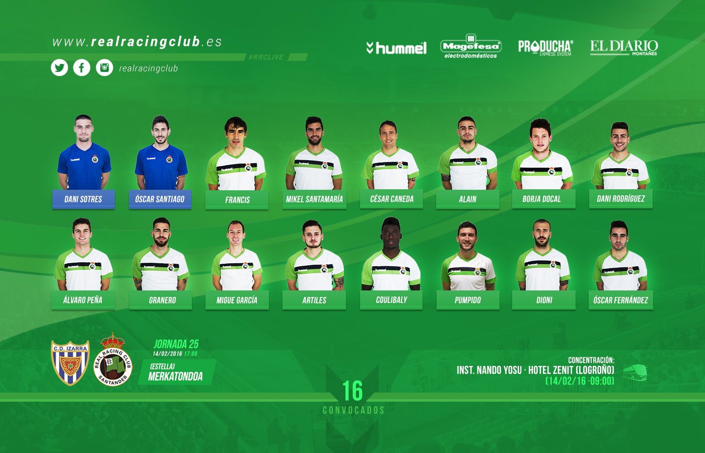 #29• Viendo como estan los bolos pinaos y las bajas que tenemos, para el partido de estella yo saldria con el siguiente once. Santiago Alain-Caneda-Santamaria-Docal Granero-Peña Dani Rodriguez Coulibaly-Dioni-Migue Los cambios serian Oscar por Coulibaly , Artiles y Pumpido segun vaya el partido.Son baja los hermanos San Emeterio y Jon Garcia. | |