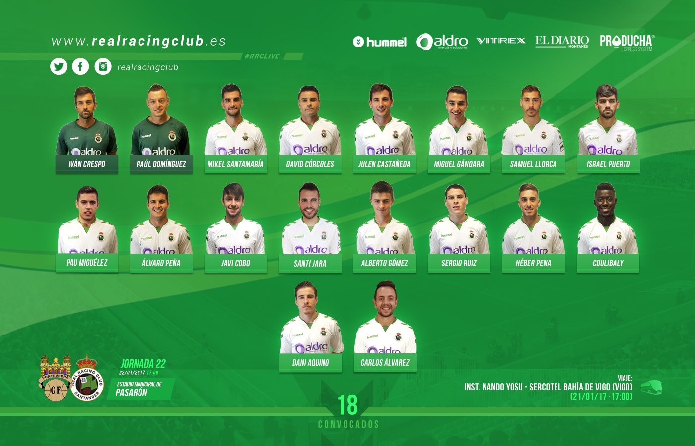 #48• Escrito originalmente por @ociepa Escrito originalmente por @arman79 Se sabe si lo televisan por la gallega??. Gracias. si, lo televisaran en la tvg2 y tambien en la señal europea (lo que se ve en las plataformas fuera de galicia). Hola buenas, a parte de la señal de la tvg2 lo dan en la web http://www.crtvg.es/en-directo/ (ahi aparece el evento del Pontevedra-Racing). El Domingo hay comida de peñas desde las 13:00 horas muy cerca del estadio, por supuesto sereis bienvenidos a disfrutar de la comida, las cañas, etc. Hay algún desplazamiento organizado? En cuanto a lo deportivo, llegamos con la baja de Mario Barco que estaba siendo vital en la punta del equipo. Lo suplirá Mateu Ferrer, delantero parecido a Mario, peleón y con remate. Esperemos ver un buen partido y seguir con la racha de invictos en Pasarón, que está siendo la clave esta temporada. Suerte a partir del Domingo! | |