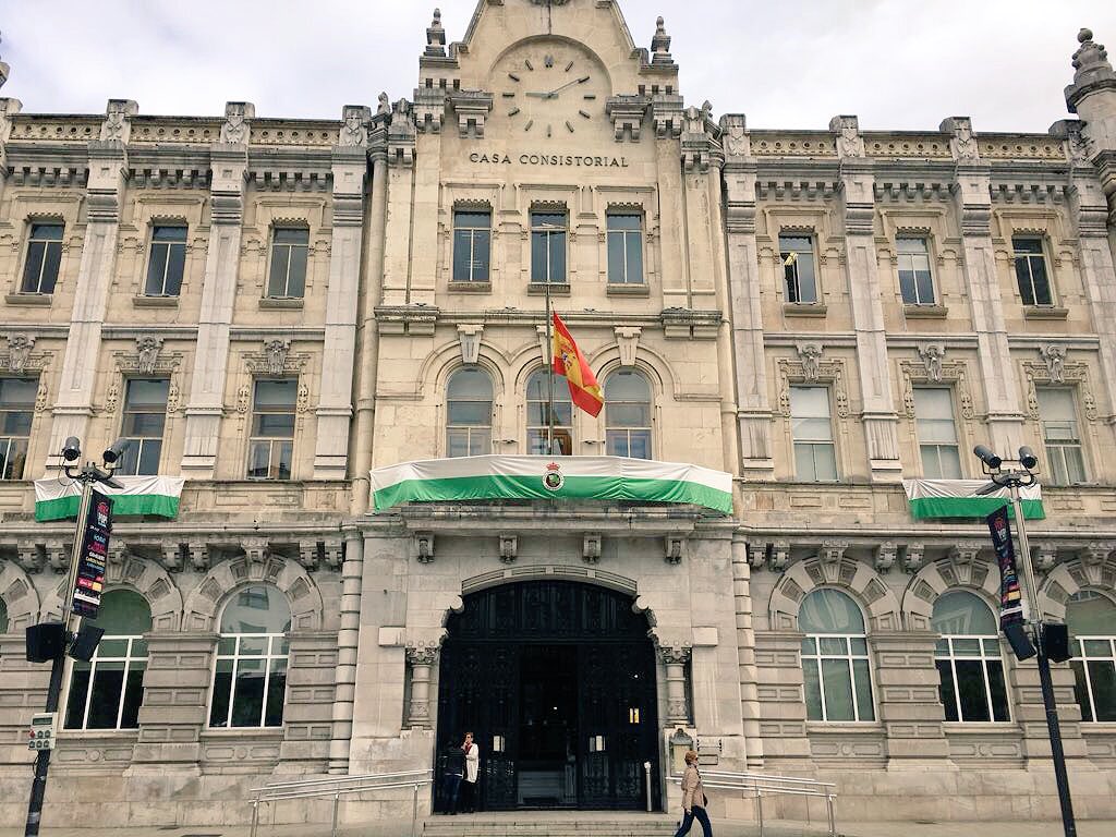 #403• parece ser que a gema no le ha dado igual y ha terminado poniendo la bandera del racing. Nunca es tarde para tener una minima cordialidad entre ayuntamiento y racing. Ya si hubiera buenas relaciones sería la de dios... A primera hora colocando la bandera del @realracingclub con su presidente Manolo Higuera. El Ayuntamiento ya luce engalanado para la ocasión ¡Buenos días! Santander amanece verdiblanca y ya #ViveUnAscenso. ¡Muchas gracias al Ayuntamiento y a @gemaigual por el apoyo!