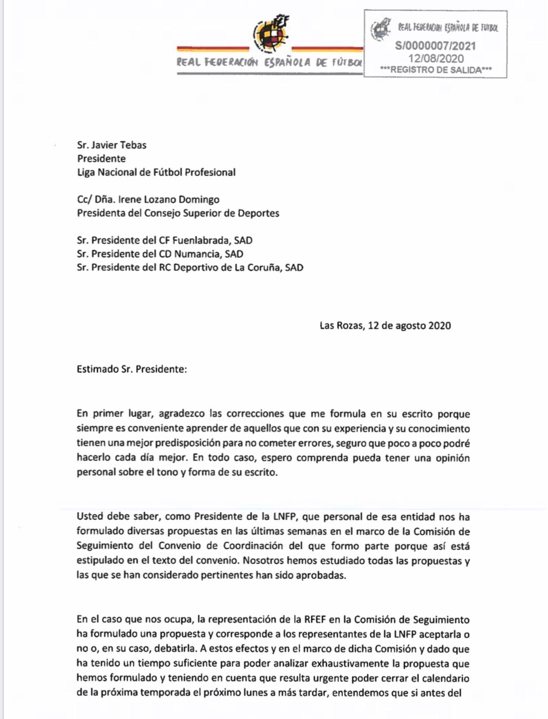 #829• Escrito originalmente por @ARDA_96 El Partidazo de COPE @partidazocope ÚLTIMA HORA | La @rfef insiste a @LaLiga y @deportegob para tomar una decisión en su propuesta de que la Segunda División tenga 24 equipos la próxima temporada Como Tebas no acepte la propuesta parece que la guerra esta servida, CSD Y RFEF van de la mano y a la LFP me temo que no le va quedar otro remedio que tragar con esta sugerencia/imposicion a no ser que Tebas quiera ver peligrar su sillon. A Racing y Extremadura nos estan indicando el camino de los juzgados y estas luchas intestinas entre los dirigentes del circo profesional nos pueden venir hasta bien para conservar la categoria, si se argumentan bien nuestras reclamaciones (el agravio comparativo es evidente) las medidas cautelares que tome un juez nos pueden evitar jugar en 2B la proxima temporada. | |