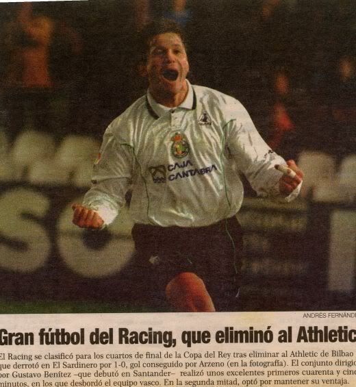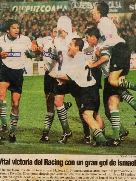 | #200• Os traigo a todos un gran regalo de Navidad, me ha llevado sus horas hacerlo pero creo que ha merecido la pena. 55 fotos de la temporada 98-99, muy recordada por muchos. La llegada de Gustavo Benitez relevando a Yosu poco antes de terminar la primera vuelta, la fiesta increible de miles de cántabros en Salamanca, viajes numerosos a Oviedo, Zaragoza etc jugadores como Munitis, Victor, Mellberg, Amavisca, Salva, Arzeno, Ceballos, Magallanes, los últimos minutos de Billabona etc el equipo se salvó a poco del final pero realmente con el paso de los años parece claro que había equipo para haber hecho mejor papel. Fuera de casa se hizo una gran temporada pero en casa el equipo fue un desastre con 8 derrotas en 19 partidos. Muy recordada tmbn la andadura en copa eliminando al Bilbao en octavos y cayendo estrepitosamnte en el Sardinero 2-6 con el Real Madrid tras ir ganando 2-1 y con un ambiente histórico aquella noche en el campo. Si alguien pone las fotos en otro foro u otro sitio que ponga de donde las ha sacado, está claro que las fotos no son mías sino de fotográfos de El Diario Montañes, AS, revista Racing..pero el trabajo de archivo/escaneado y subida lleva mucho tiempo para que alguien se apropie de ser el que ha tenido las fotos y las ha subido como ha pasado otras veces. Espero que a muchos os haga recordar grandes y buenos tiempos. saludos y SIEMPRE RACING!! Victor Sanchez del Amo(22 años) y Munitis (23 años), las dos estrellas de la temporada
