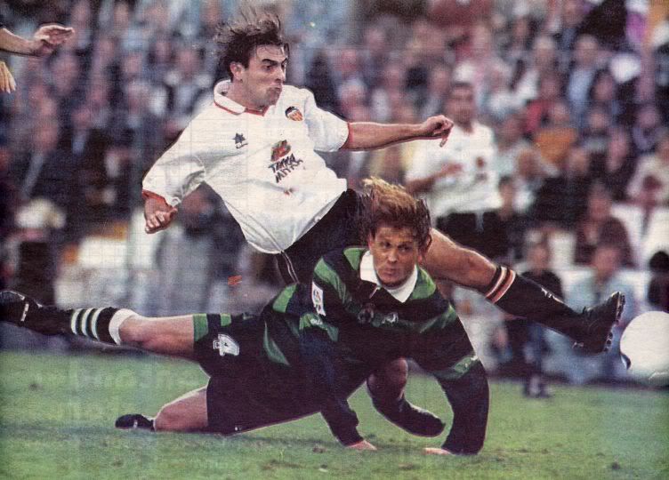 Salva con Tasevski, con un joven Albelda y Diaz detrás