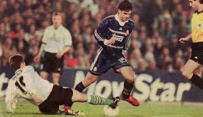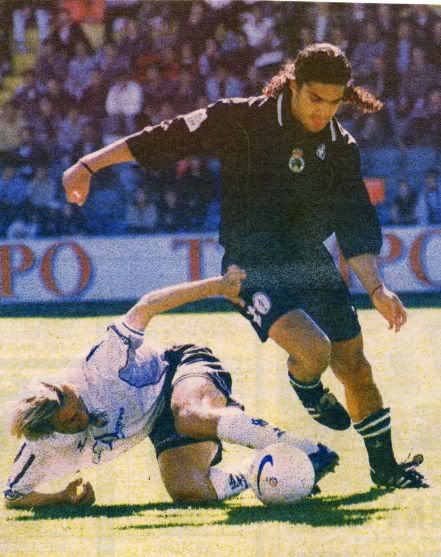 El Madrid vuelve a ganar en El Sardinero, ahora en Liga. Shustikov intenta cortar un avance de Morientes