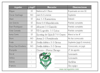 faltan 2: iñaki, jugo el partido entero con el tenerife, en cordoba. chus hevia, jugo los 8 ultimos minutos del cartagena-linares, sustituyendo a oscar rico. | |