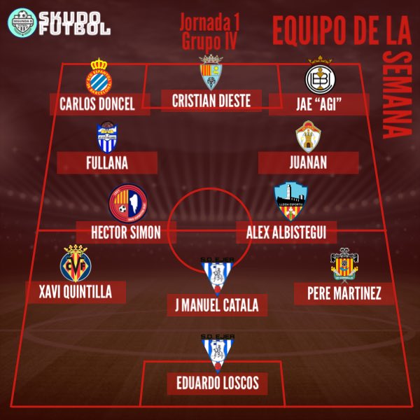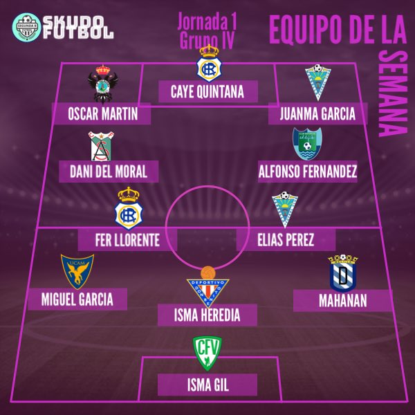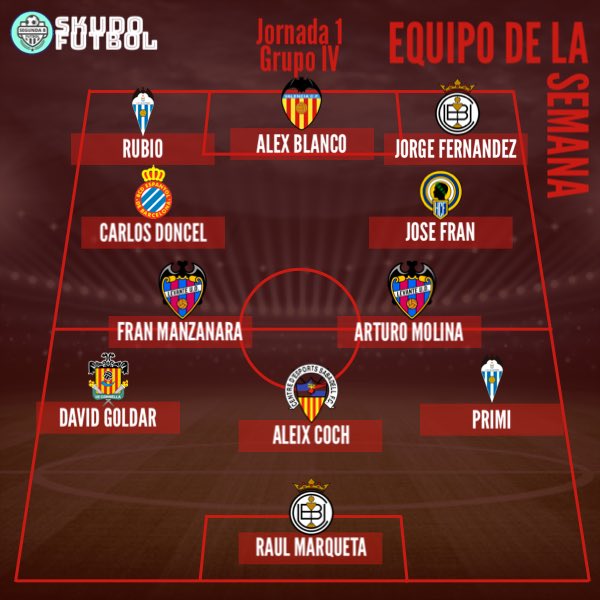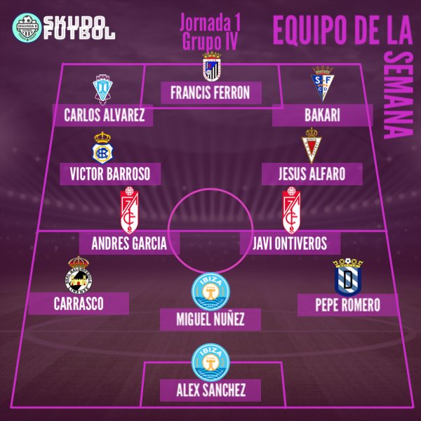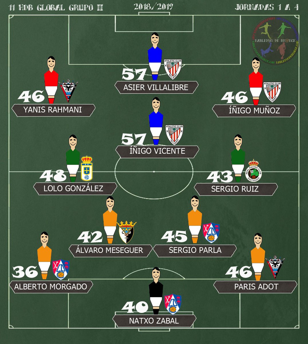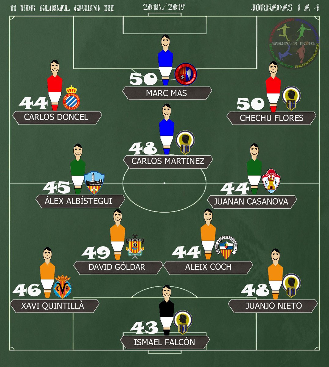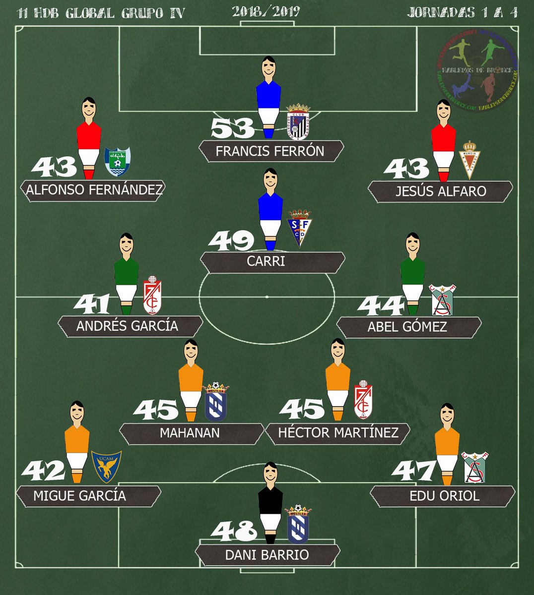 11 IDEAL GRUPO 4 Jornada 4. P: Dani Barrio. Melilla Df:Marin. Granada B Df:Mario. Don Benito Df:Morgado. Badajoz Df:Peris. Marbella Md:Carri. San Fernando Md:Añon. Marbella Md: Moyita. Cartagena Md: E. Oriol. Sanluqueño Dc:Cellerino. Linense Dc: Francis Ferron. Badajoz