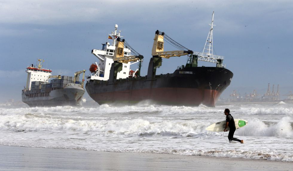 #110•• 2 buques mercantes varados ante la palya del El Saler, en Valencia, tras el temporal de ayer.