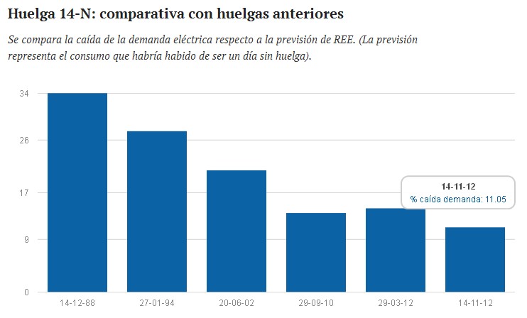 #30• Huelga general: Manifestaciones en toda España cierran la jornada- Según CCOO y UGT, el porcentaje de seguimiento de la huelga ha sido del 76,7% Los sindicatos cifran el seguimiento en un 12,2% menos que en marzo http://www.elmundo.es/elmundo/2012/11/14/espana/1352861849.html