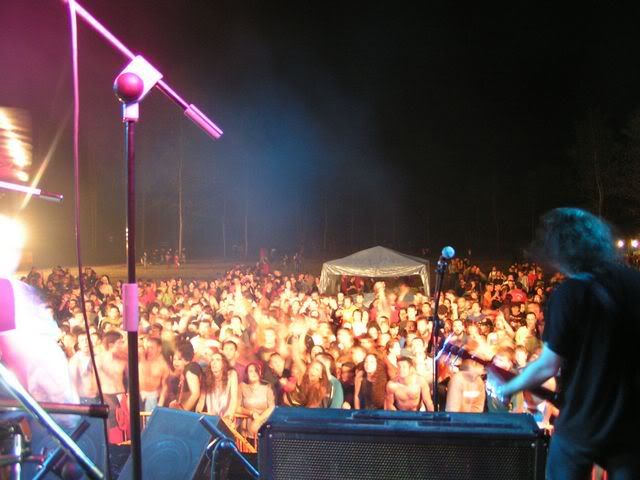 #317• Ya, la verdad es que se pasaron con el precio (que eran 12 en taquilla, no 15; y 10 en anticipada), y ni te cuento con la bebida (3.50 la media de cerveza), pero mereció la pena. Sobre todo, porque a mi me gustan más esos conciertos con poca gente que los multitudinarios. Los habia visto el sabado pasado en Vilbao (con unas 2000 personas) y ste sábado, y es diferente. | |