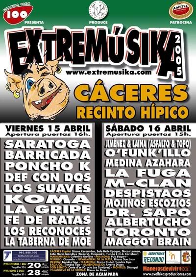 #81• Escrito originalmente por _JcC_RuNs_SaP_ Escrito originalmente por Ap0st0L ¿alguien sabe de que va a ser el festival? de Rock me imagino que no, que el facha de Piñeiro lo tiene prohibido. Un saludo No se de ke me suena ke el pasado veranoe n campa de la magdalena hubo conciertros de rock.... Si yo vi a La Fuga pero esos no son políticamente incorrectos... | |