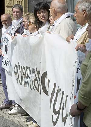 #452• HORAS DESPUÉS DEL FIN DEL ALTO EL FUEGO De Juana es trasladado desde el hospital de San Sebastián a una cárcel de Madrid![]() La novia de De Juana, Irati Aranzabal, en una concentración hoy en San Sebastián. (Foto: EFE) Actualizado miércoles 06/06/2007 13:36 (CET) ELMUNDO.ES MADRID.- El preso de la banda terrorista ETA José Ignacio de Juana Chaos está siendo trasladado a una prisión de la Comunidad de Madrid. El traslado se produce horas después de que ETA anunciase el fin del alto el fuego iniciado el 24 de marzo de 2006. Ante el hospital Donostia de San Sebastián, donde De Juana estuvo ingresado desde que le fuera concedida la prisión atenuada, hay al menos 16 furgones de la Ertzaintza y tres coches camuflados de la Guardia Civil, lo que supone un despliegue muy inusual, informa Iñaki Andrés. El martes, el ministro del Interior, Alfredo Pérez Rubalcaba, anunció que el etarra no sería conducido a su domicilio después de que el hospital le diera el alta. http://www.elmundo.es/elmundo/2007/06/06/espana/1181127485.html Buena noticia, la cárcel es donde debe estar. | |