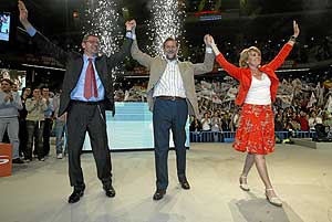 ![]() Rajoy, Gallardón y Aguirre, en el cierre de las pasadas elecciones autonómicas. (Foto: Kike Para) Actualizado miércoles 16/01/2008 01:12 (CET) ELMUNDO.ES MADRID.- Alberto Ruiz-Gallardón renunciará a la política un día después de las elecciones generales del 9 de marzo tras no ser incluido por Mariano Rajoy en las listas del Partido Popular, según ha podido saber elmundo.es. Así se lo hizo saber el alcalde de Madrid al propio líder 'popular', Esperanza Aguirre y Ángel Acebes en una tensa reunión en la sede de Génova. La presidenta de la Comunidad de Madrid, Esperanza Aguirre, ha ganado su pulso político con Gallardón. Aguirre ha lanzado durante la reunión un órdago, ya que le ha asegurado a Rajoy que si Gallardón iba en las listas electorales, dimitiría de su cargo para poder presentarse también a los comicios. Aunque ambos se mostraban dispuestos a ir juntos en las listas, Rajoy ha rechazado esta posibilidad alegando que eran más útiles para el partido y para el interés general en sus cargos actuales. Ésta es precisamente la versión del comunicado oficial del PP, que asegura que Gallardón y Aguirre "han reiterado su ofrecimiento para formar parte de la candidatura del Partido Popular en Madrid" y que Rajoy "ha agradecido a ambos su disposición" pero les ha pedido que "continúen al frente de sus respectivas responsabilidades institucionales". En todo caso, el presidente 'popular' trasladó a Aguirre y Ruiz-Gallardón que cuenta con su "colaboración activa" para la campaña electoral, que comenzará el 23 de febrero. La decisión de Rajoy se produce el mismo día en que ha comunicado que el portavoz del partido en el Congreso, Eduardo Zaplana, estará en la lista de Madrid y no en la de Valencia, pese a ser ex presidente de la Comunidad Valenciana. Rajoy ha dicho al alcalde y a la presidenta autonómica que cuenta con su "colaboración activa" para la campaña La inclusión o no del alcalde de Madrid en las listas ha sido una de las grandes incógnitas de la precampaña y una fuente de conflictos entre los 'populares', ya había opiniones encontradas sobre la conveniencia de que los alcaldes se presenten o no a los comicios. Rajoy estaba "harto" de la legislatura que "le han dado" ambos dirigentes madrileños y de las "presiones" recibidas, según fuentes 'populares' consultadas por Efe. En alguna ocasión en privado, el presidente del PP ha llegado a decir, según esas fuentes, que no admite que la gente "venga a postularse" como su sucesor. En el encuentro —producido en la sede 'popular' de la calle Génova, en Madrid—, que ha sido calificado de tenso por las fuentes consultadas, estaba también presente el secretario general del PP, Ángel Acebes. De este modo, en ningún momento han estado a solas el presidente del partido y el alcalde de Madrid. La decisión se ha tomado antes de lo esperado, ya que, según está previsto, este miércoles se reunirán los comités electorales provinciales del partido, que remitirán sus propuestas para los cabeza de lista al Comité Electoral Nacional, presidido por Javier Arenas, que previsiblemente las aprobará el próximo jueves. Los comités de Baleares —que ha designado a María Salom como cabeza de lista— y de la Comunidad Valenciana —que ha hecho lo propio con González Pons, Trillo y Costa por Valencia, Alicante y Castellón— se han reunido anticipadamente. | |